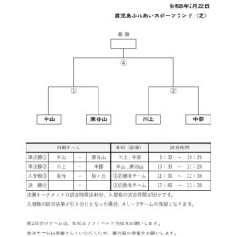 FF杯予選リンクの日程・組み合わせが決定しましたのでお知らせします。 開催日:令和8年2月1日(日) 会場:ふれあいスポーツランド(芝) なお、決勝トーナメントは2月22日(日)に健康の森公園にて開催いたします。 同日は…