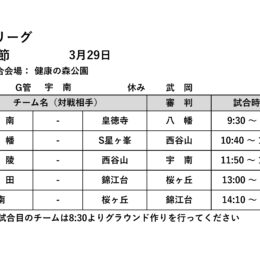 日時:令和8年3月29日 会場:健康の森公園 G管:宇南FC 休み:武岡FC