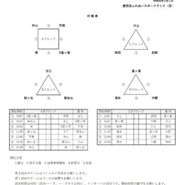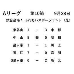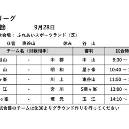A、Bリーグの共催となります。 日時:令和7年9月28日 会場:ふれあいスポーツランド(芝) Aリーグ:G管 東谷山FC、休み 谷山FC Bリーグ:G管 ガンバ南、休み 八幡FC