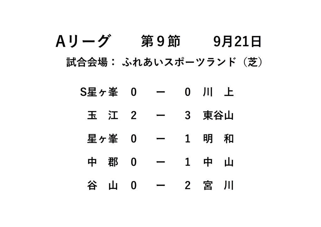 2025年度 父親サッカーリーグ 第9節試合結果のお知らせ