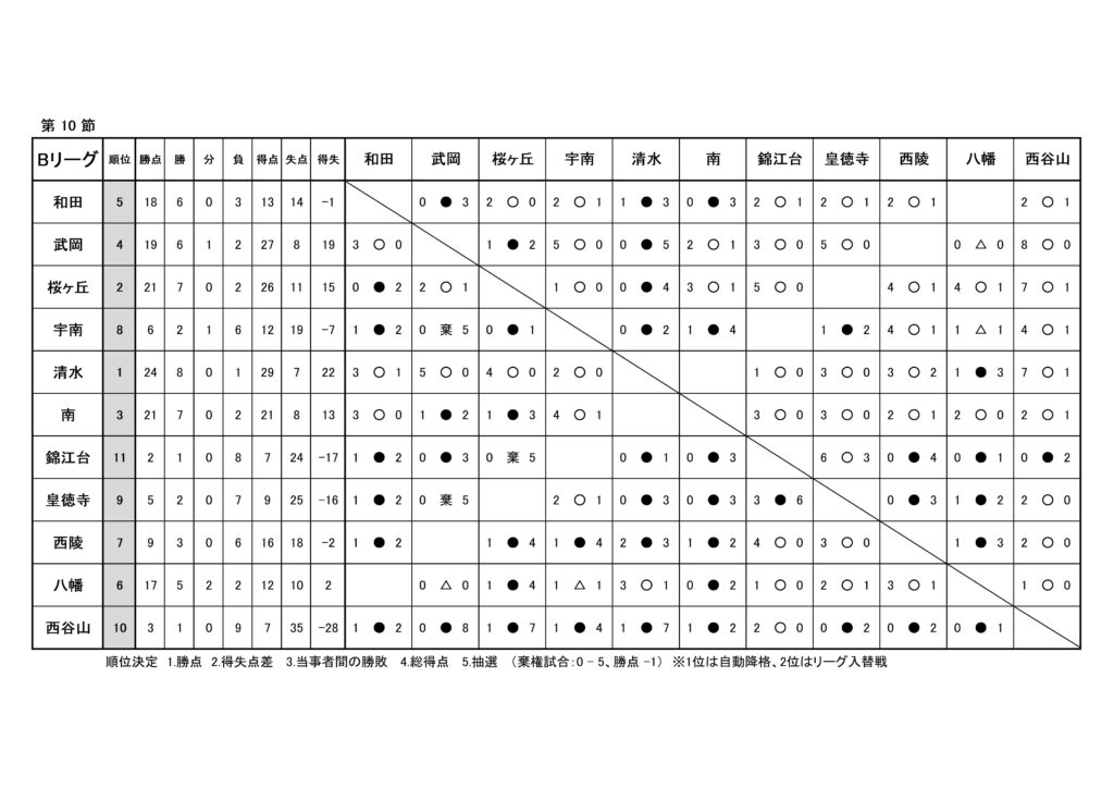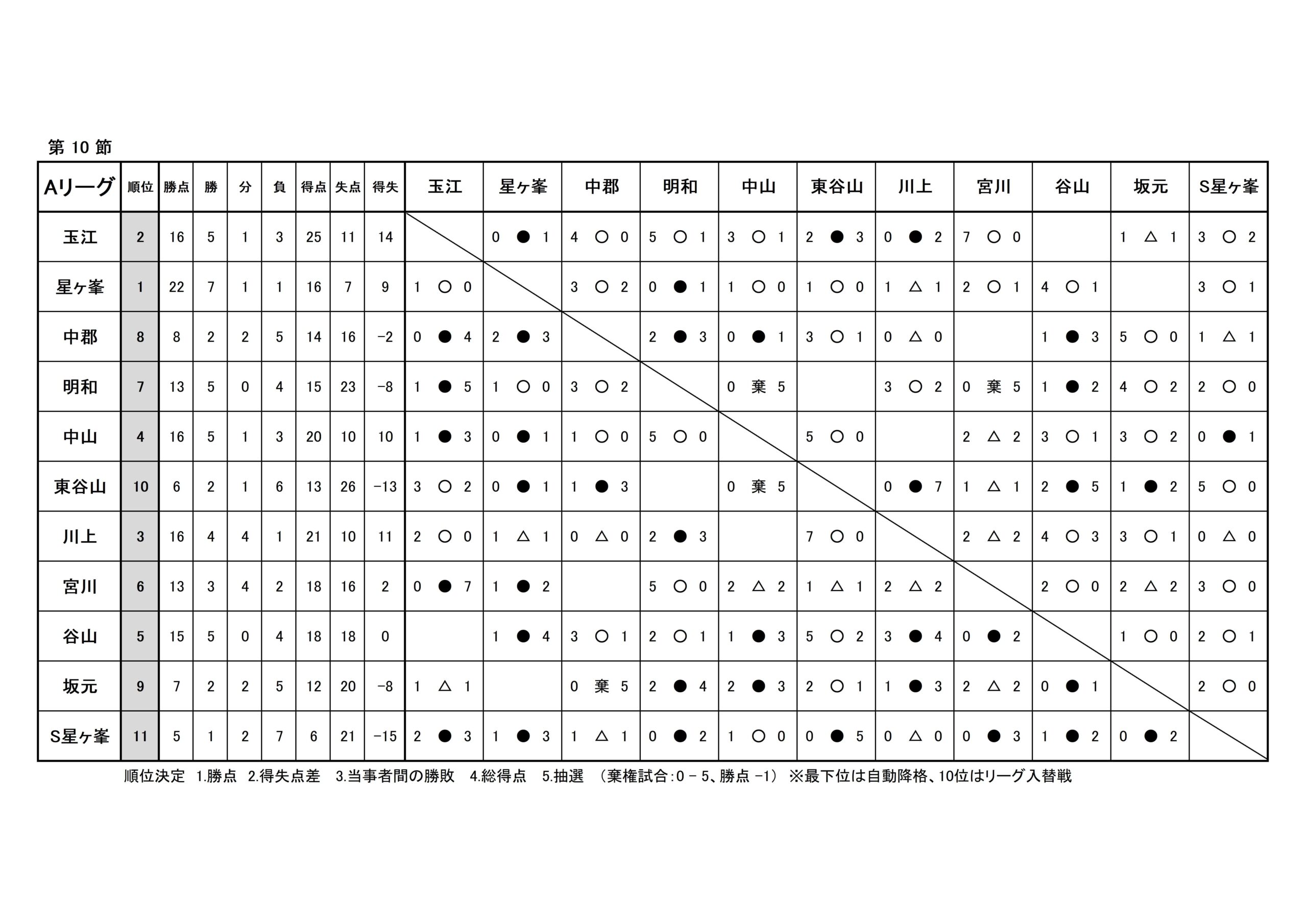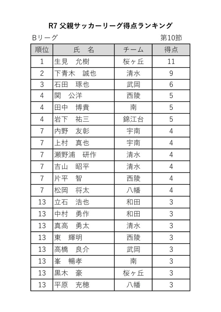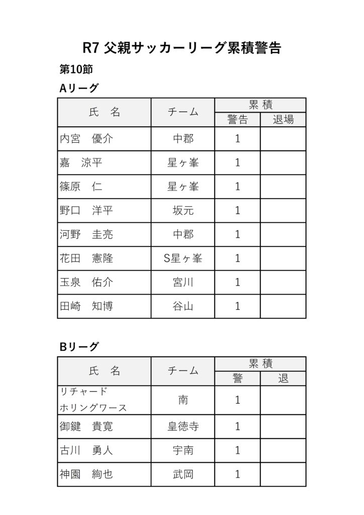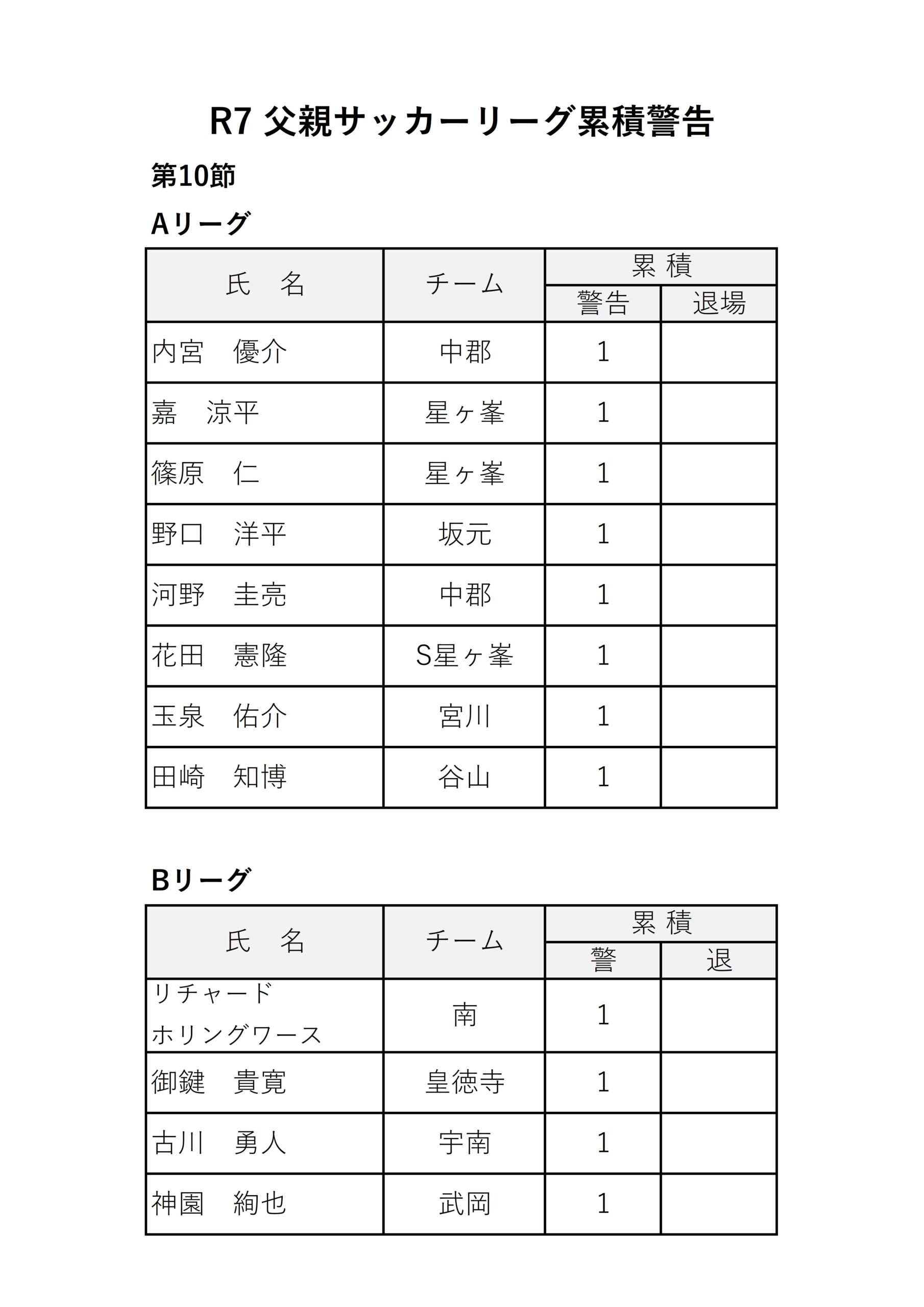 2025年度 父親サッカーリーグ 星取表及び得点ランキング、警告枚数のお知らせ