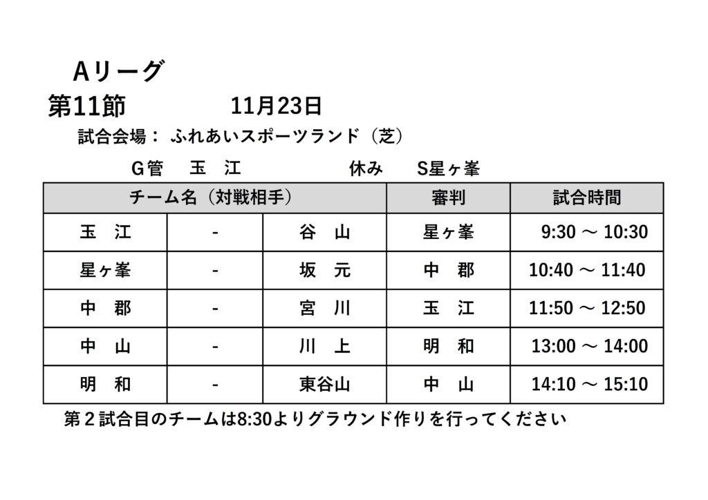 2025年度 父親サッカーリーグ第11節開催のお知らせ