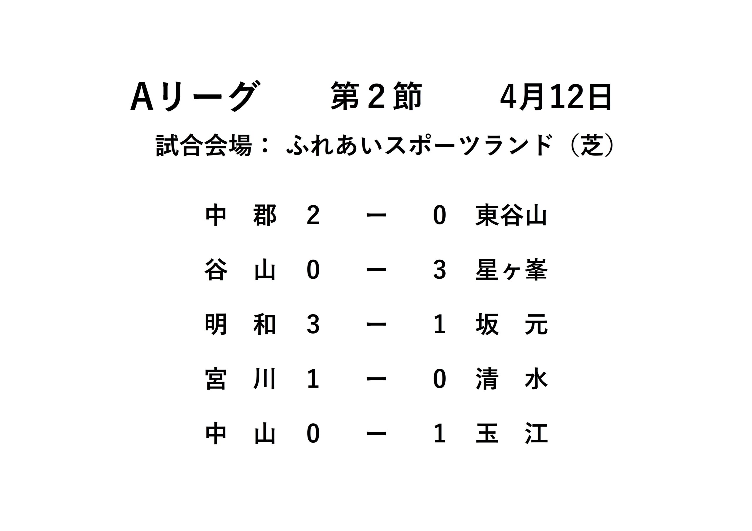 Aリーグ第2節、Bリーグ第3節の結果となります。